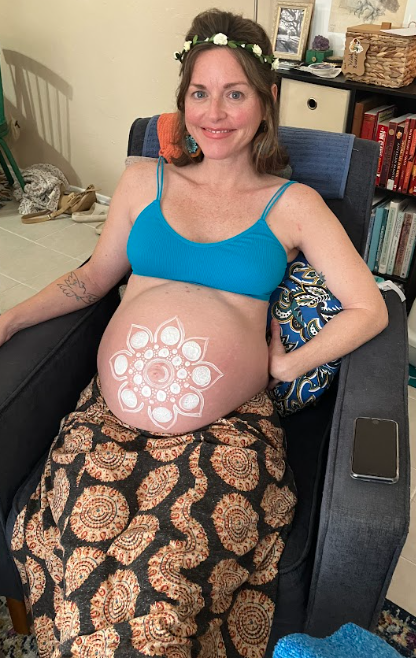The key is to tune in to what feels meaningful to you and invite your guests to be part of that. We shared poems, sang songs, and simply enjoyed the beauty of being together. Another wonderful tradition is having your guests prepare nourishing dishes—some to enjoy during the gathering and some to freeze for when the baby arrives. Having that extra nourishment postpartum is such a gift! Perhaps the most heartfelt tradition of all was having my dear friend paint a mandala on my belly while my mom lovingly prepared my headspace for birth. She brushed my hair gently and placed a flower crown on my head, creating a sacred and nurturing moment. I felt so deeply loved and honored, completely surrounded by warmth and support as I prepared to welcome my baby.